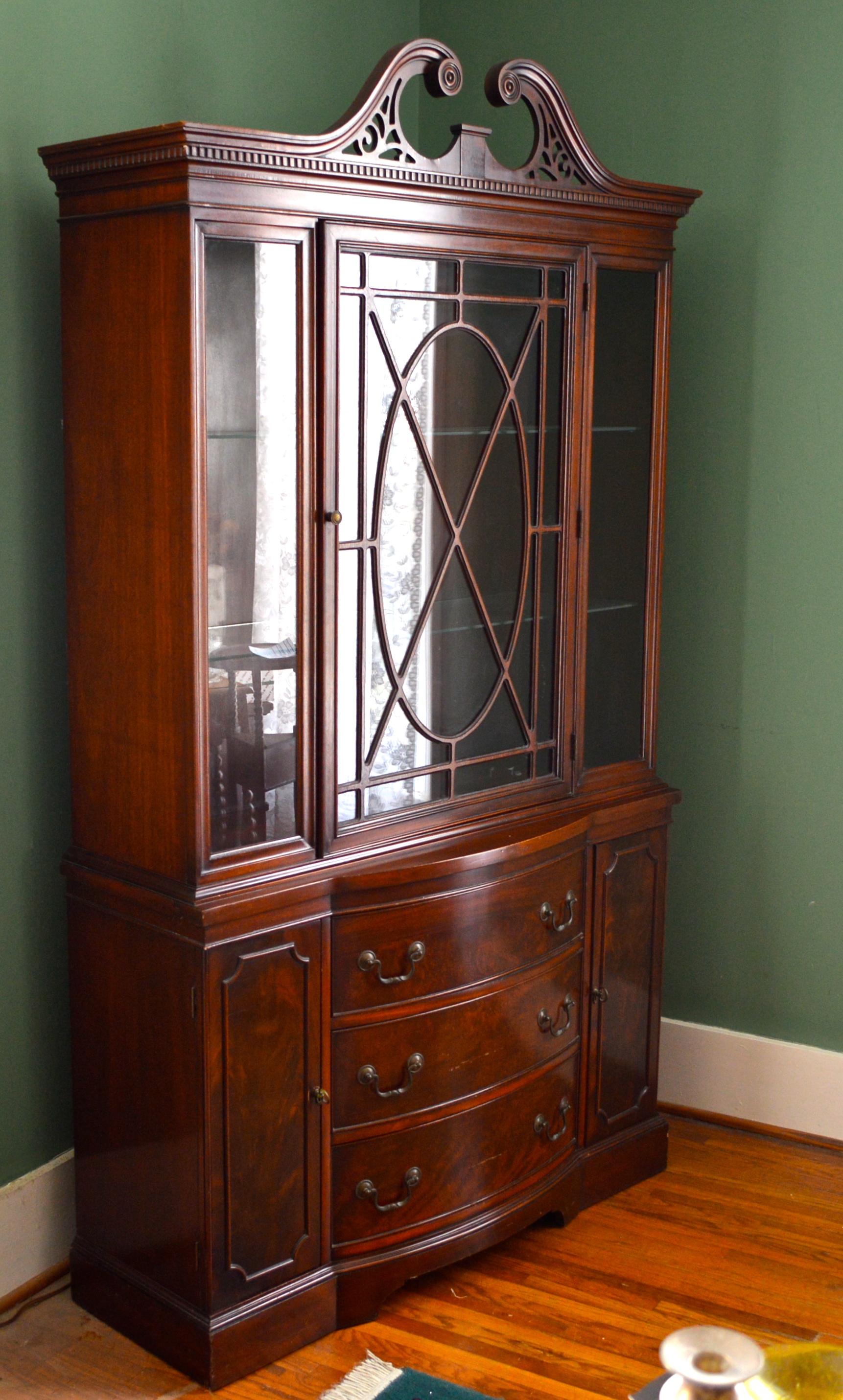 Bow front mahogany china cabinet from uantique.com Item features 3 curved/bowed glass panes, paw feet, rolling casters. Subtle carvings on the top and front of the cabinet. Lower section of bow front. I enlisted some help to work out a foolproof method that doesn't require any special tools or equipment. This bowed glass china cabinet has beautiful detail and great craftsmanship. Check out our bow fronted cabinet selection for the very best in unique or custom, handmade pieces from our buffets & china cabinets shops. Oriental solid rosewood china cabinet. Your current version of internet explorer is out of date.